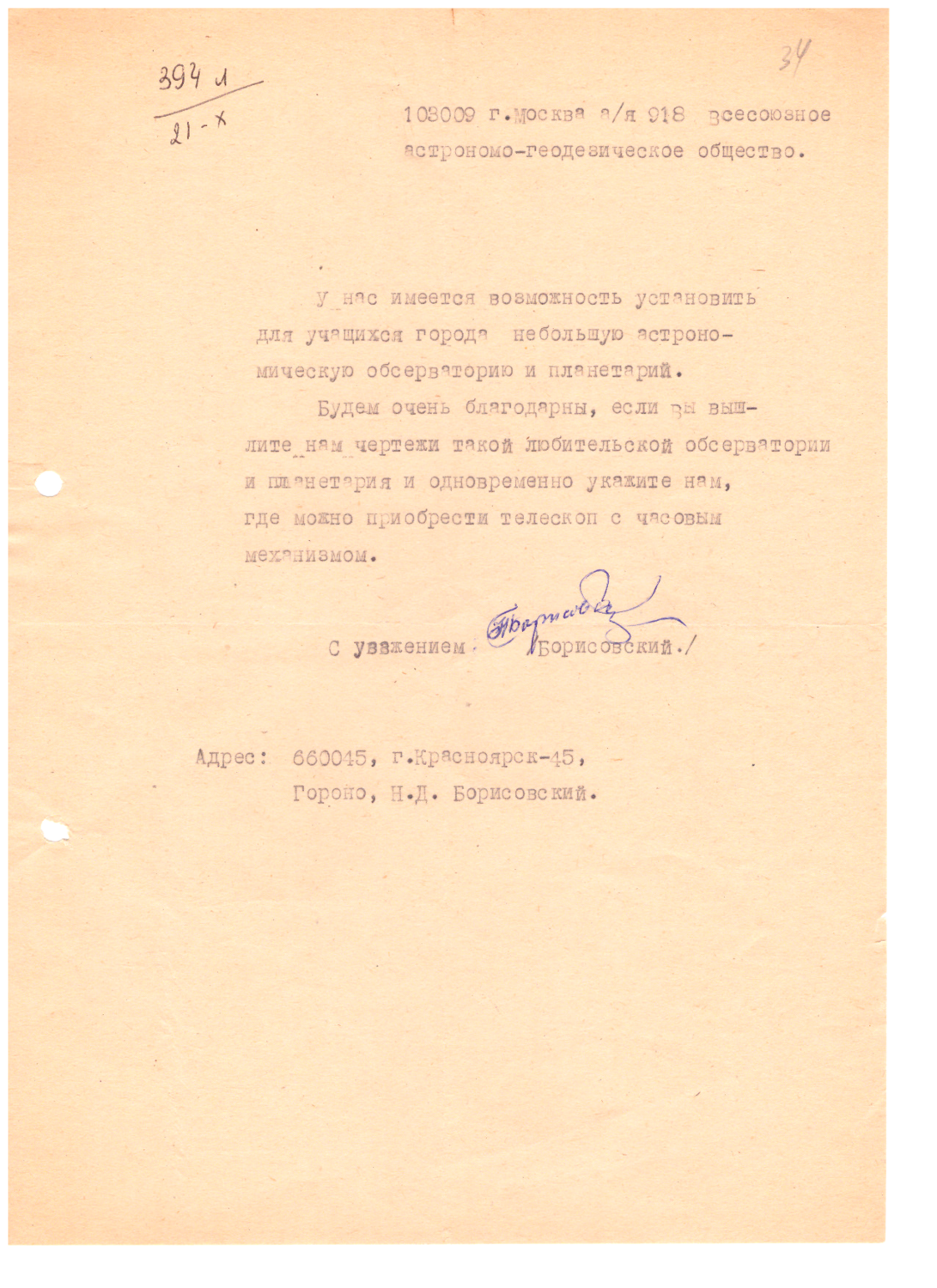 Письмо в центральный совет от отделение ВАГО Красноярск 45