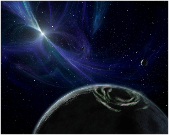После обсуждений с теоретиками в области астрофизики Вольщан и Фрейл пришли к выводу, что звезда, которая взорвалась и оставила после себя пульсар, сформировалась более миллиарда лет назад и была связана гравитацией с меньшей звездой-компаньоном, как это часто бывает. Более массивная звезда из этой пары взорвалась, превратившись в сверхновую, и стала нейтронной звездой.Нейтронная звезда поглотила огромное количество массы звезды-компаньона, и эта аккреция способствовала быстрому вращению нейтронной звезды. В конце концов излучение нейтронной звезды испарило звезду-компаньона, оставив после себя пыль и газ, из которых сформировались планеты.